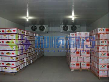 过去一般认为,提高水果冷库的湿度能引起腐烂增加。但近来则有报道认为,引起腐烂不是相对湿度,而是水汽在果实上凝结为水珠而导致腐烂增加。在苹果小包装贮藏中,我们发现小包装袋内近似于100%的相对湿度条件下,果实的腐烂并未增加,相反,讨于防止果实的水份蒸发起到了很大作用。所以,国外曾有人主张对某些水果的贮藏采用95~97%甚至更高的相对湿度。但是,并不是所有水果都适宜于高湿度水果冷库贮藏。温洲萝柑贮藏于高湿情况下,会引起浮皮,果肉千缩,风味淡薄,果皮油胞揭变。高湿条件下贮藏血橙、膝橙等品种果实则能加重枯水。又如巨峰、黑罕等品种的荀萄的贮藏亦不宜采用高湿度。高湿度,易引起果实上霉菌繁殖生长〕由上述可见,对于不同品种的水果我们应该控制水果冷库不同的贮藏湿度,创造一个良好的贮藏环境,只有这样才能确保贮藏水果的质量。然而,我国的水果冷库设计建造时!很少考虑安装湿度调节装置。